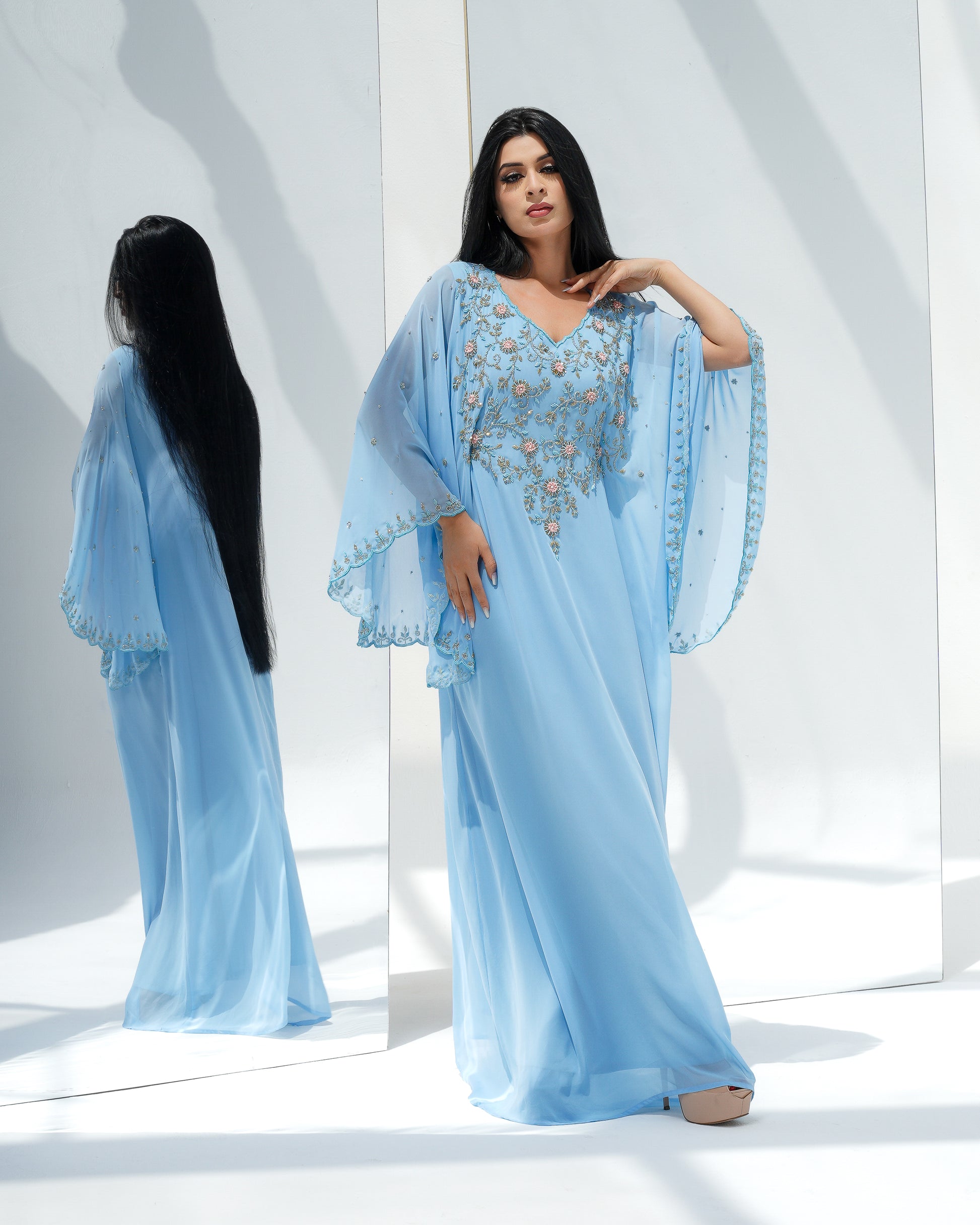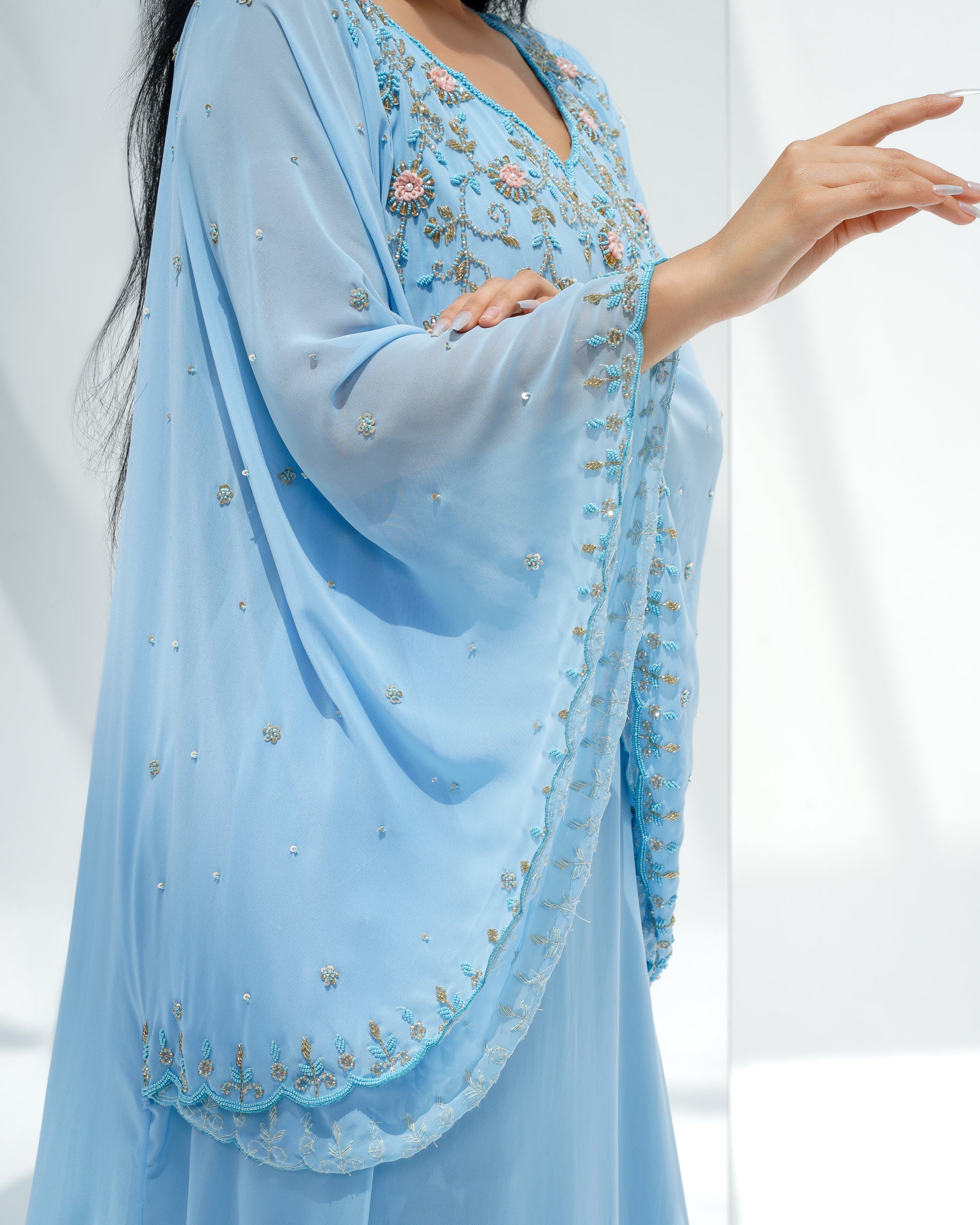 hand emblished blue water louise kaftan.